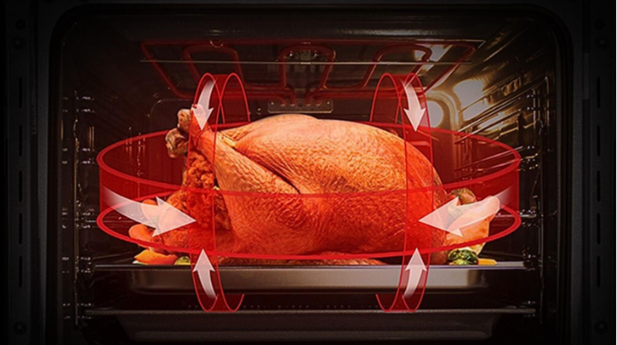 Teknologi convection membantu distribusi panas merata ke seluruh ruang oven, sementara pintu tiga lapis kaca menjaga kestabilan suhu selama proses memasak. Fitur grill turnspit juga memungkinkan pemanggangan daging berukuran besar secara berputar agar matang merata dan tetap juicy.